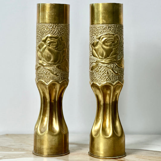 WWI Trench Artillery Brass Shell Casings - Pair