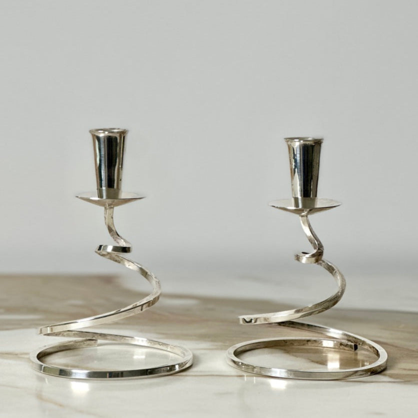 Fisher K202 Silver Plate Spiral Candlesticks - Pair