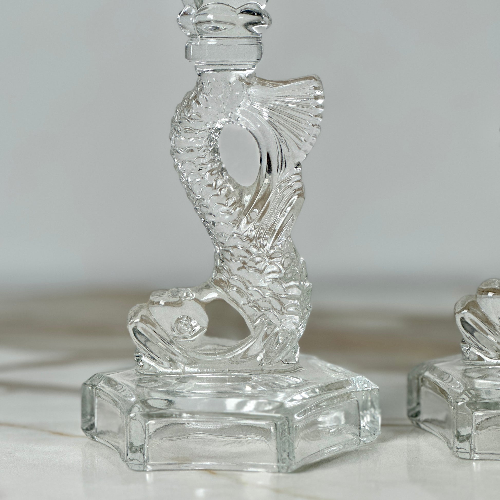 Glass Dolphin Candlesticks - Pair