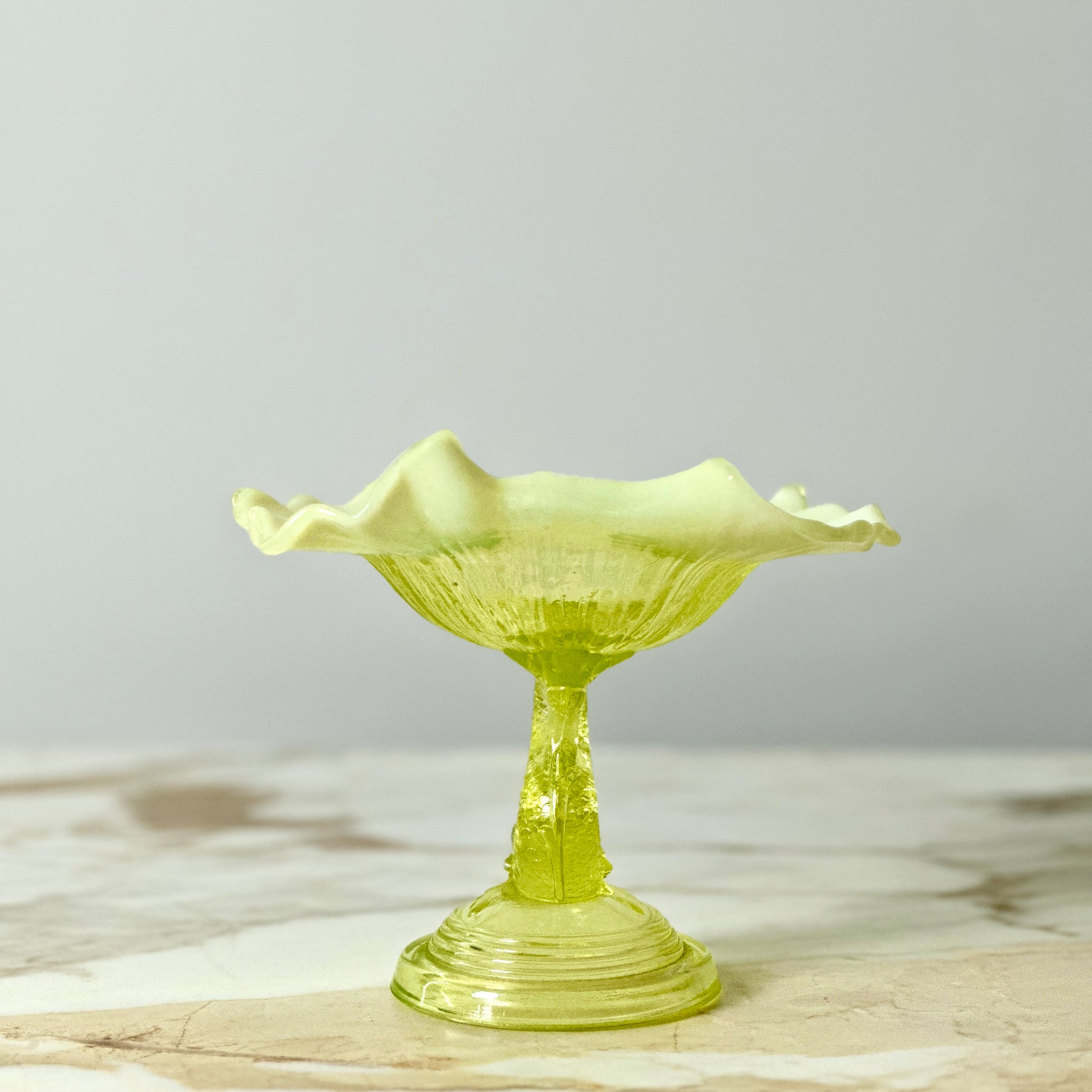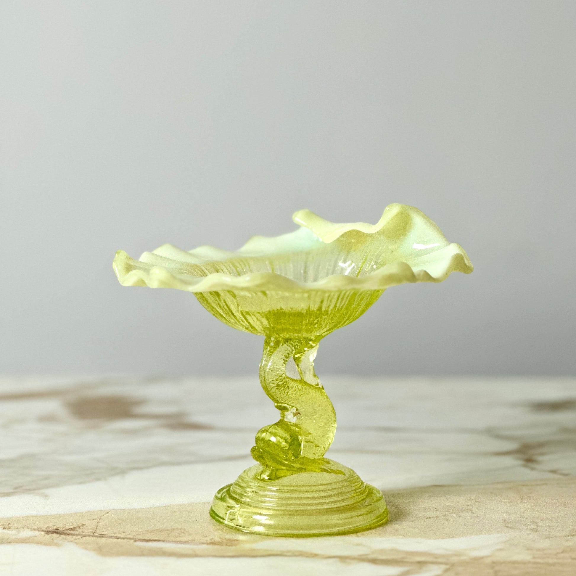 LG Wright Vaseline Glass Dolphin Koi Compote Dish